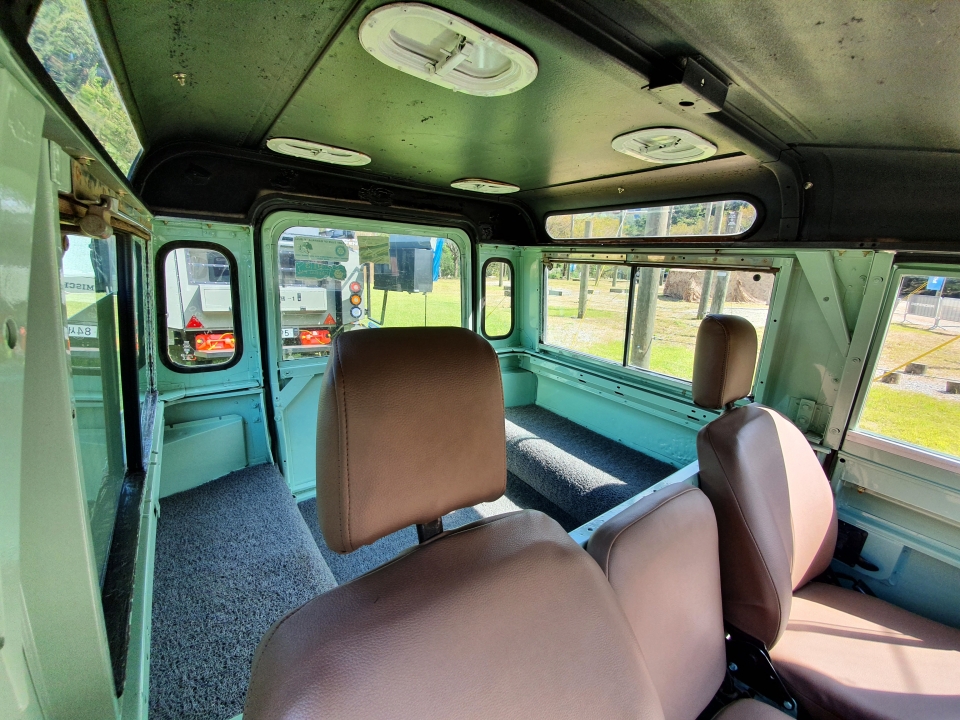 차내에는 2.25L 가솔린 엔진이 탑재돼 있다. 탁 트인 시야와 수평형 대시보드, 계기판, 커다란 스티어링휠, 기다란 수동기어까지. 랜드로버의 역사와 전통을 고스란히 간직하고 있다.