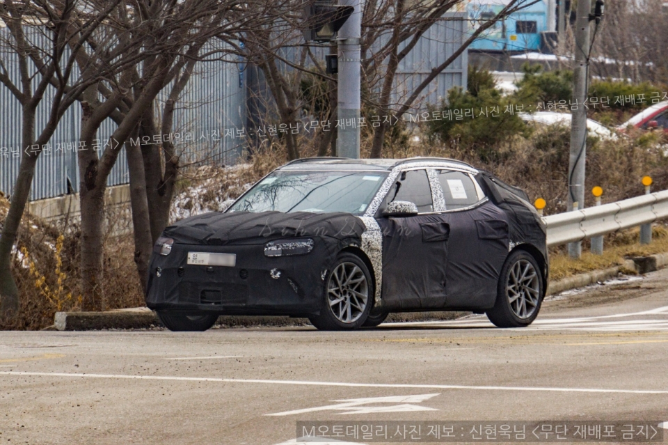 [M 오토데일리 차진재 기자] 위장막을 뒤집어쓴 채 테스트 주행을 하던 제네시스 GV60(코드명 JW)가 국내 도로서 포착됐다.